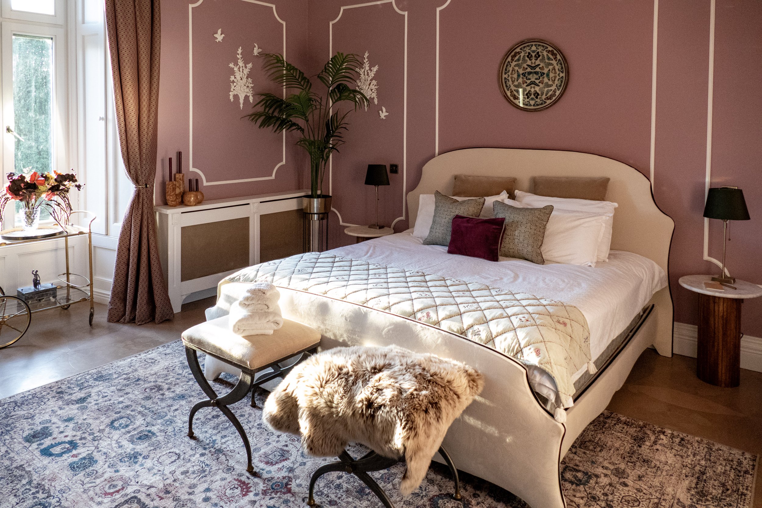 The bedrooms at Killoskehane extend the castle’s story into a more intimate register. Each space is shaped by influences gathered through travel, expressed through colour, texture and atmosphere. The result is a collection of rooms that feel individual yet harmonious, grounded in heritage while quietly evocative of places beyond its walls.